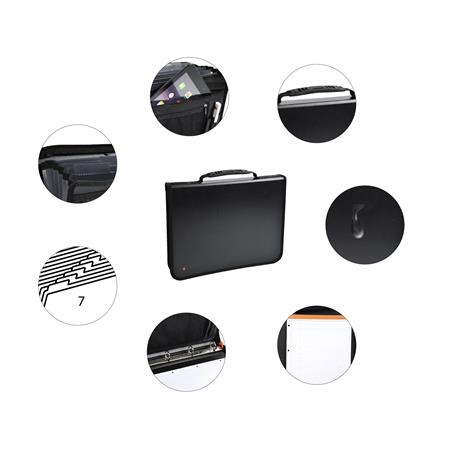 Tablet rekesszel kiegészített konferencia mappa kényelmes fogantyúval.