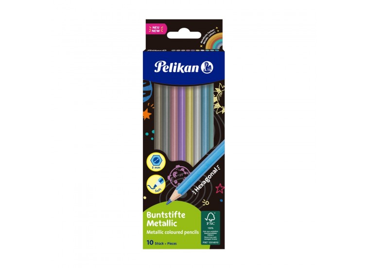 Metálszínű színesceruza készlet/10 szín, 100% FSC fából, törésbiztos béllel. Intenzív színek, lágy szívfelvitel, 3mm-es bélvastagság.